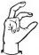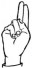 На ћирилици написано РАДНА ЗДРАВКОВИЋ састоји се из 15 слова [?]. Исписано ћириличном једноручном азбуком за глувонеме: